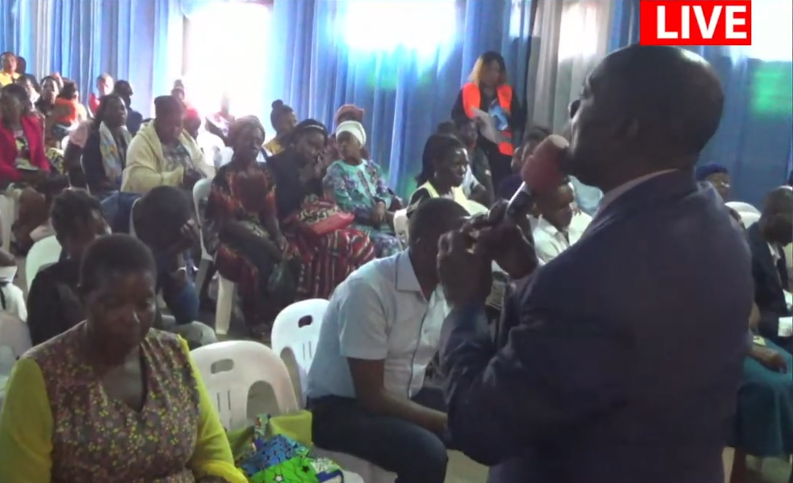 We conduct one Sunday service; which begins with intersession, praising and worshiping, testimonies, praising and worshiping, preaching …..